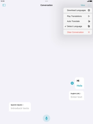 To translate speech, press the microphone icon and say the required word or sentence.