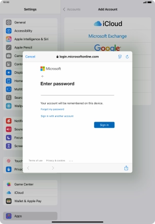 Press Password and key in the password for your email account.