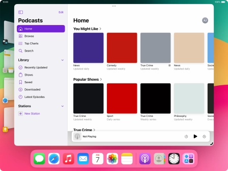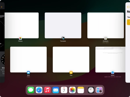 Press the required application in Dock and drag it to the required location on the screen.