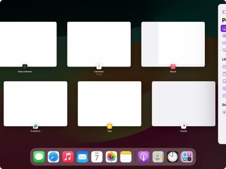 See how to get more space on the screen for your active applications by turning off display of running applications and Dock in Stage Manager.