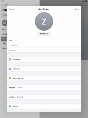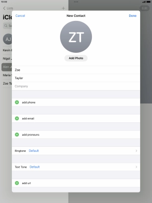 Create contact on your Apple iPad Air (2019) iPadOS 17