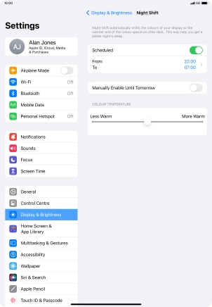 Select Night Shift settings on your Apple iPad Air (2022) iPadOS 17
