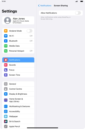 You can turn display of notifications when using SharePlay or Screen Mirroring on or off.