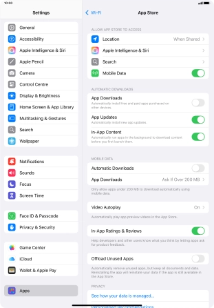 Turn automatic update of apps on your Apple iPad Pro 11 (2020) iPadOS 18 on or off