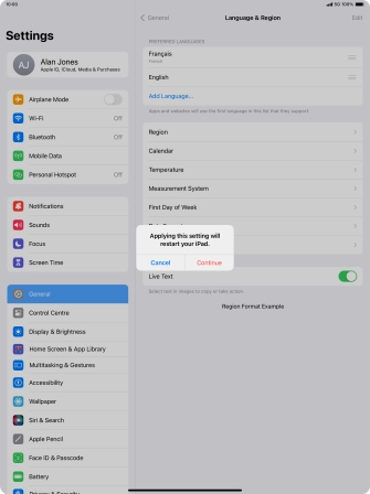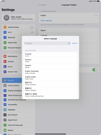 Select language on your Apple iPad Pro 12.9 (2022) iPadOS 17