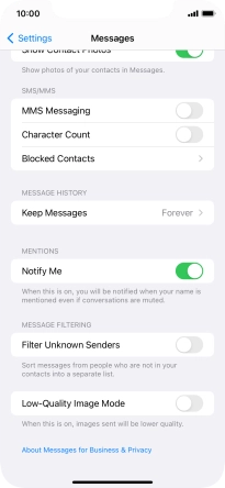 Press the indicator next to "MMS Messaging" to turn on the function.
