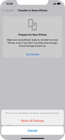 Press Reset All Settings. Wait a moment while the factory default settings are restored. Follow the instructions on the screen to set up your phone and prepare it for use.