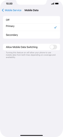 Press the indicator next to "Allow Mobile Data Switching" to turn the function on or off.