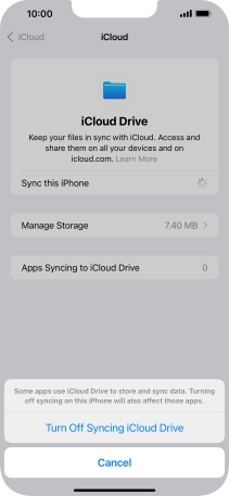 If you turn off the function, press Turn Off Syncing iCloud Drive.