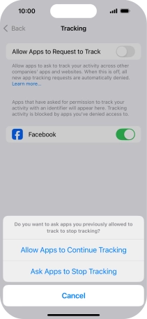 Press the indicator next to "Allow Apps to Request to Track" to turn the function on or off.