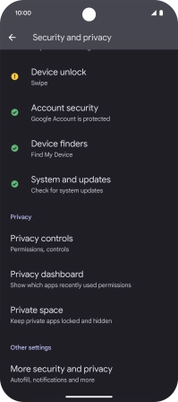 Press Security and privacy.