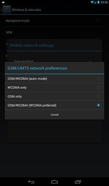 If you select GSM/WCDMA (WCDMA preferred), your tablet will select 3G as the preferred network mode.