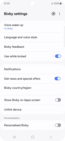 Press Bixby country/region and follow the instructions on the screen to select the required country or region.