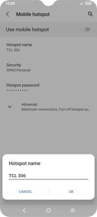 Press Hotspot name and key in the required name for the Wi-Fi hotspot.