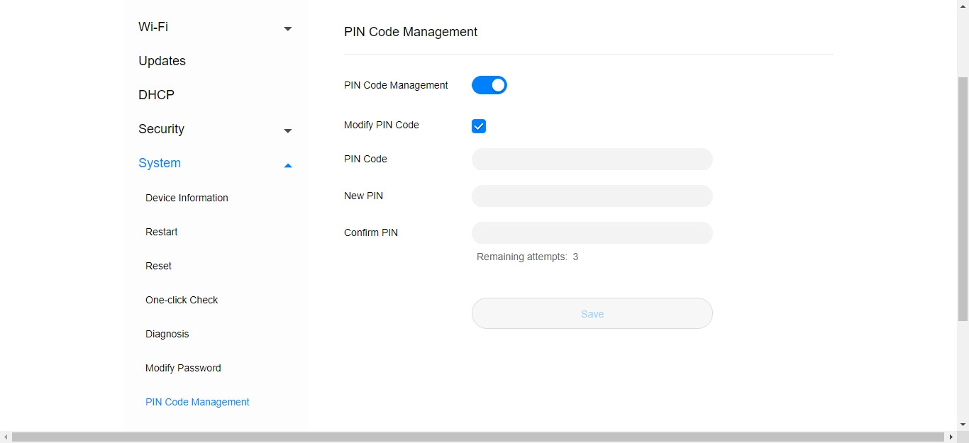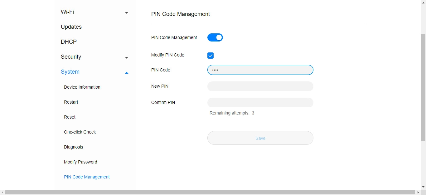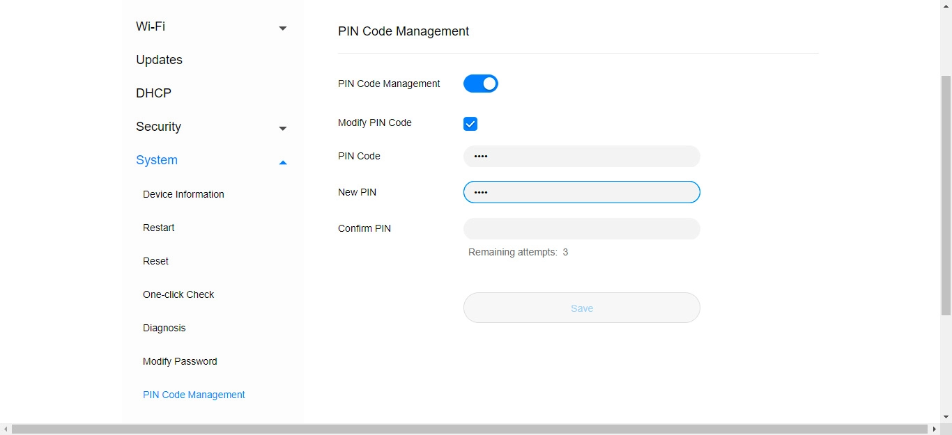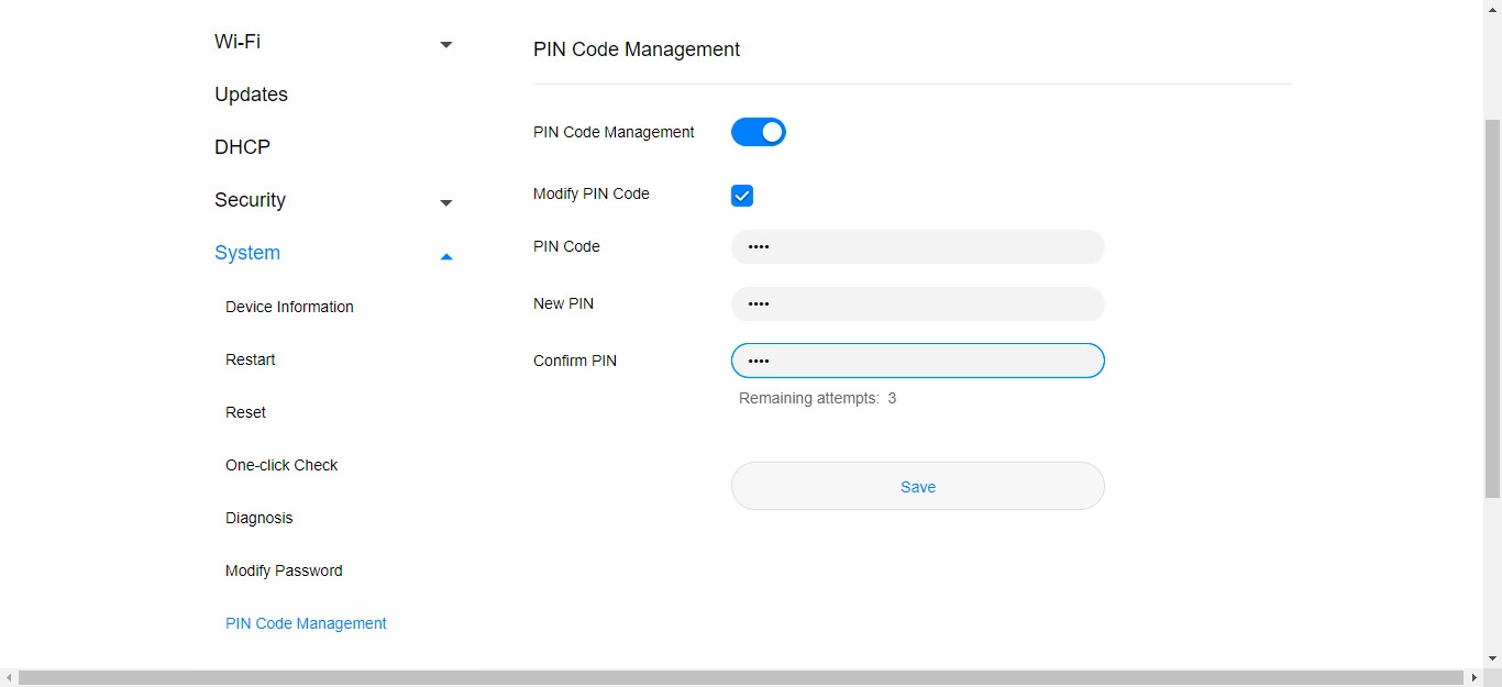 Click PIN Code Management.
