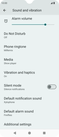 Press Alarms and other interruptions and follow the instructions on the screen to turn sound and vibration for the selected functions on or off.