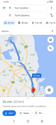 The travel information at the bottom of the screen shows your estimated time of arrival and distance to destination.