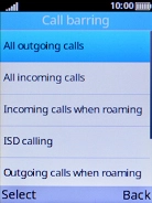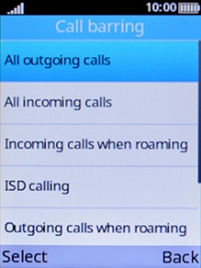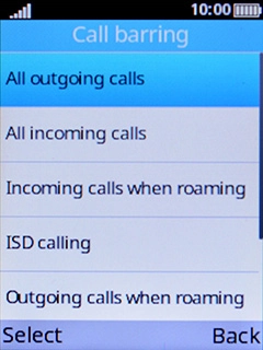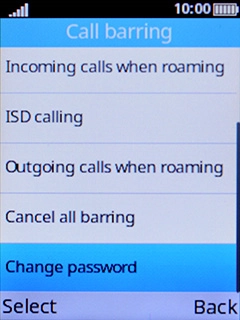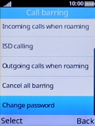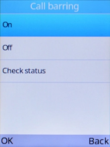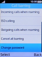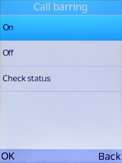 Key in your barring password and press the Left selection key. The default barring password is 1919.
