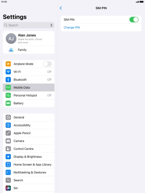 Press the indicator next to "SIM PIN" to turn the function on or off.