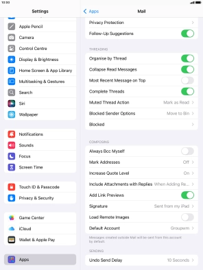 Select default email account on your Apple iPad 10.2 (7th gen.) iPadOS 18