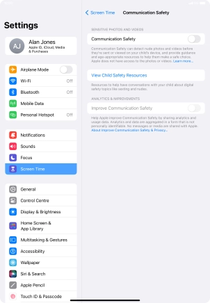 Turn Communication Safety on your Apple iPad (10th Generation) iPadOS 17 on or off