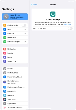 Press iCloud Backup.