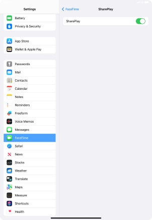 Press the indicator next to "SharePlay" to turn the function on or off.