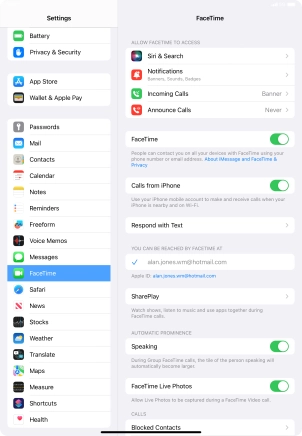 You can set FaceTime to use the account on your iPhone to make and receive FaceTime calls when your iPhone is near your tablet and connected to Wi-Fi.