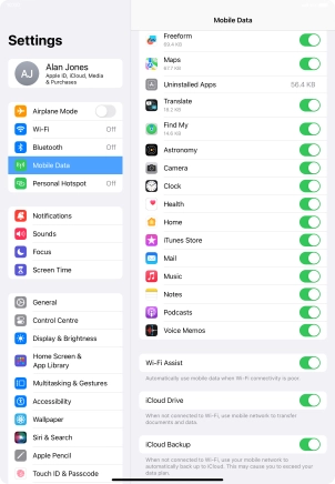 Press the indicator next to "Wi-Fi Assist" to turn the function on or off.