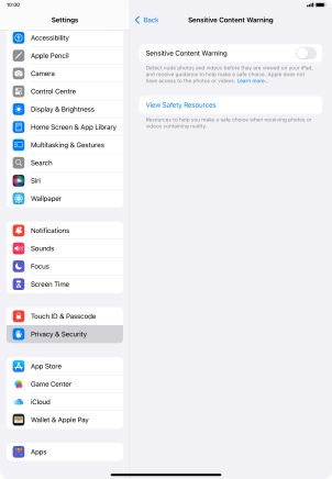 Turn Sensitive Content Warning on your Apple iPad (10th Generation) iPadOS 18 on or off
