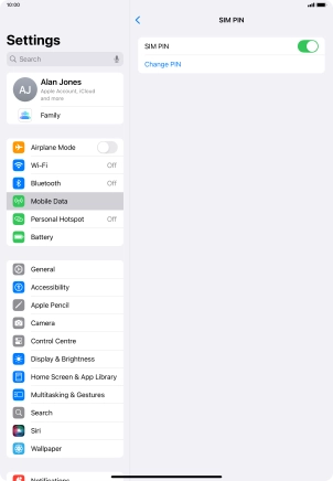Press the indicator next to "SIM PIN" to turn the function on or off.