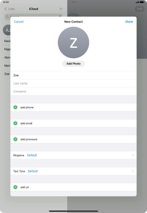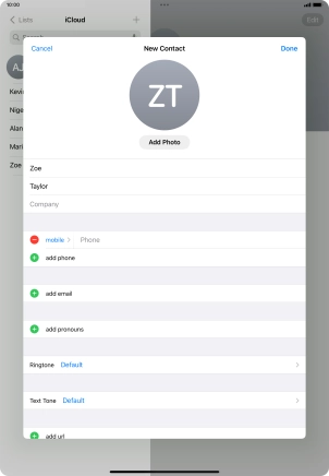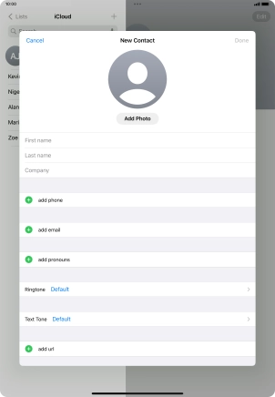 Create contact on your Apple iPad (10th Generation) iPadOS 18