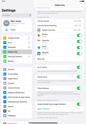 Turn Wi-Fi Assist on your Apple iPad (10th Generation) iPadOS 18 on or off
