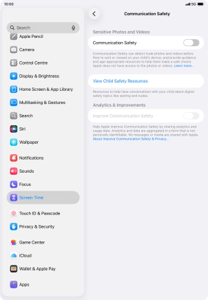Turn Communication Safety on your Apple iPad (10th Generation) iPadOS 26 on or off