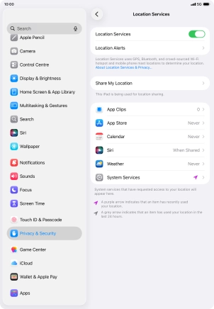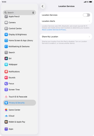 Turn GPS on your Apple iPad (10th Generation) iPadOS 26 on or off