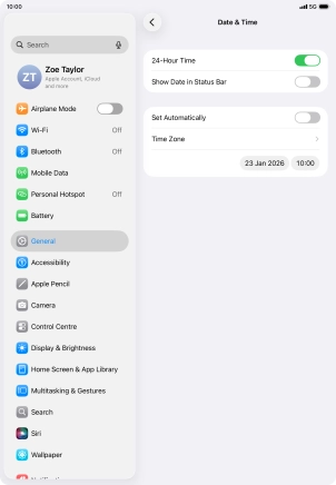 Set date and time on your Apple iPad (10th Generation) iPadOS 26
