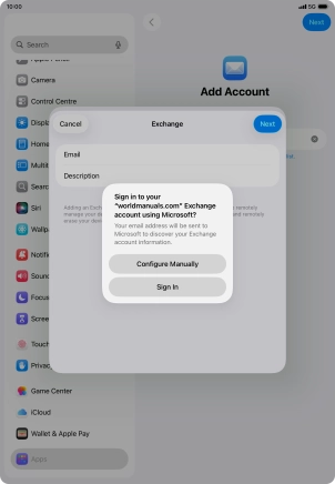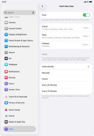Press the required email account and follow the instructions on the screen to select settings for the specific account.