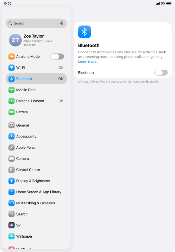 A Bluetooth device can't connect to your Apple iPad (10th Generation) iPadOS 26