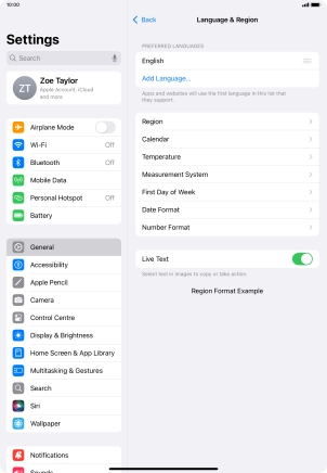 Press Language & Region.