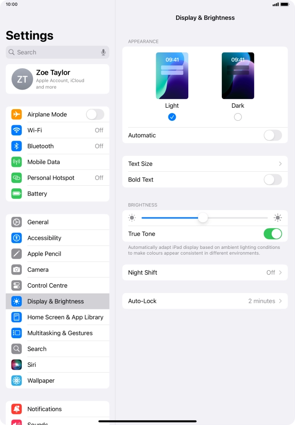 If you turn on the function, press Options and follow the instructions on the screen to select the required period of time for Dark Mode.
