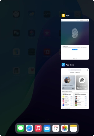 Slide your finger slowly upwards starting from the bottom of the screen until the list of running applications is displayed.