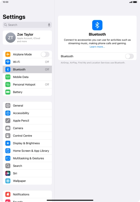 If you turn on Bluetooth, your tablet is visible to all Bluetooth devices.