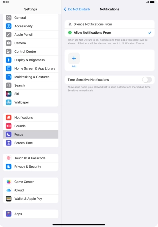Press Apps and follow the instructions on the screen to select which apps you would like to receive notifications from when Do Not Disturb is turned on.