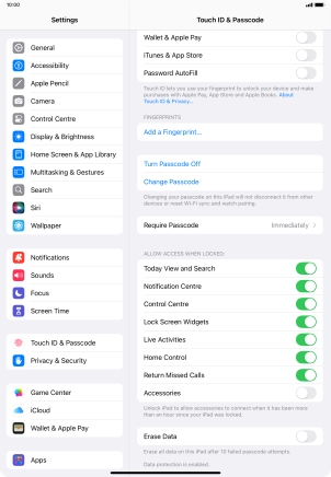 Press Turn Passcode On and key in a lock code of your own choice twice.