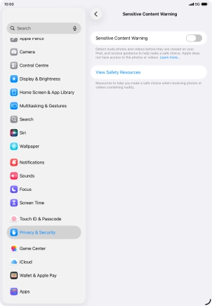 Turn Sensitive Content Warning on your Apple iPad (11th Generation) iPadOS 26 on or off