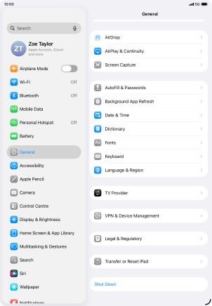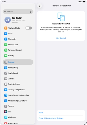 Key in the password for your Apple Account and press Turn Off. Wait a moment while the factory default settings are restored. Follow the instructions on the screen to set up your tablet and prepare it for use.