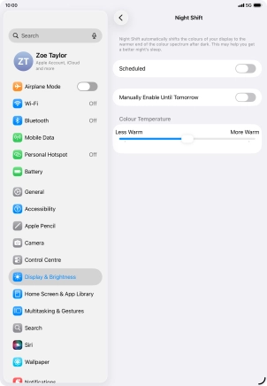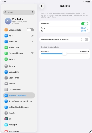 Select Night Shift settings on your Apple iPad (11th Generation) iPadOS 26