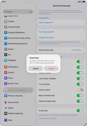 Press the indicator next to "Erase Data" to turn the function on or off.