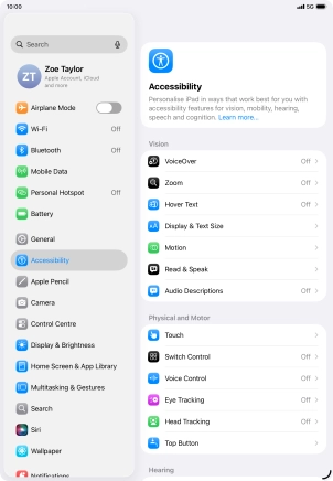 You can select different settings for tablet interaction control, e.g. AssistiveTouch, Voice Control and Eye Tracking making it easier to navigate your tablet.