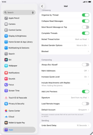 Select default email account on your Apple iPad (11th Generation) iPadOS 26